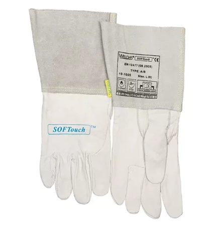 10-1005 WELDAS Rękawice spawalnicze skóra cielęca SOFTouch kciuk wzmocniony palec wskazujący bezszwowy S