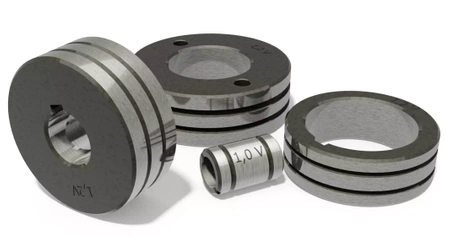 Rolki podające z izolowanym rdzeniem. Materiał to stal ulepszona cieplnie 60 ± 2 HRC. Rolki podające mogą być produkowane na specjalnych rysunkach lub próbkach dla wszystkich rodzajów drutów i we wszystkich rozmiarach.